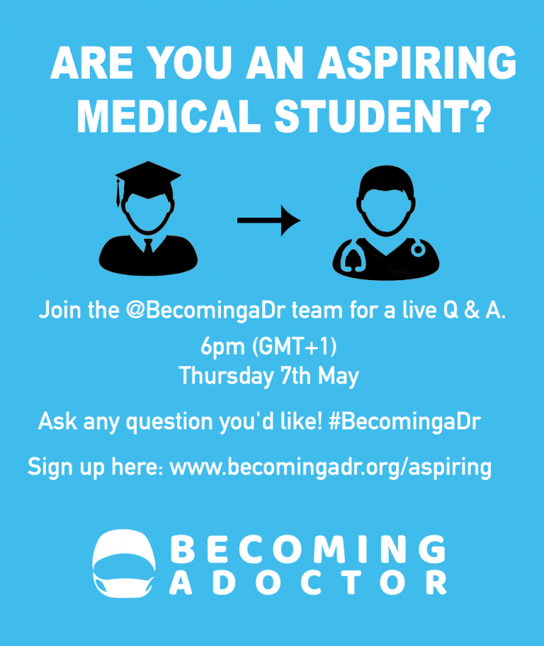 Our first event is a Live Q & A with the @BecomingaDr team on Thursday 7th March at 6pm (GMT+1)
